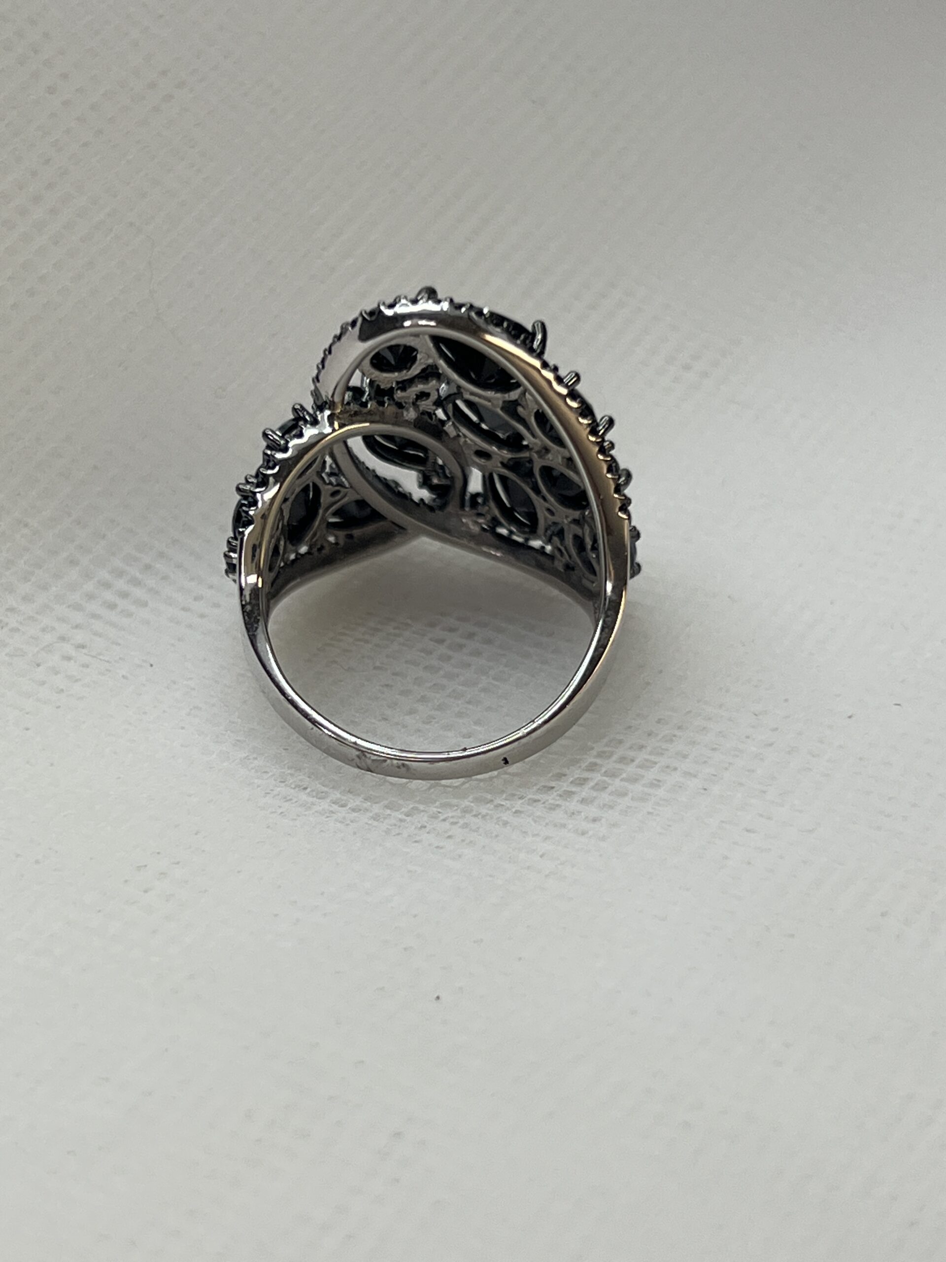 Anillo de plata con rodio negro y circonitas negras .