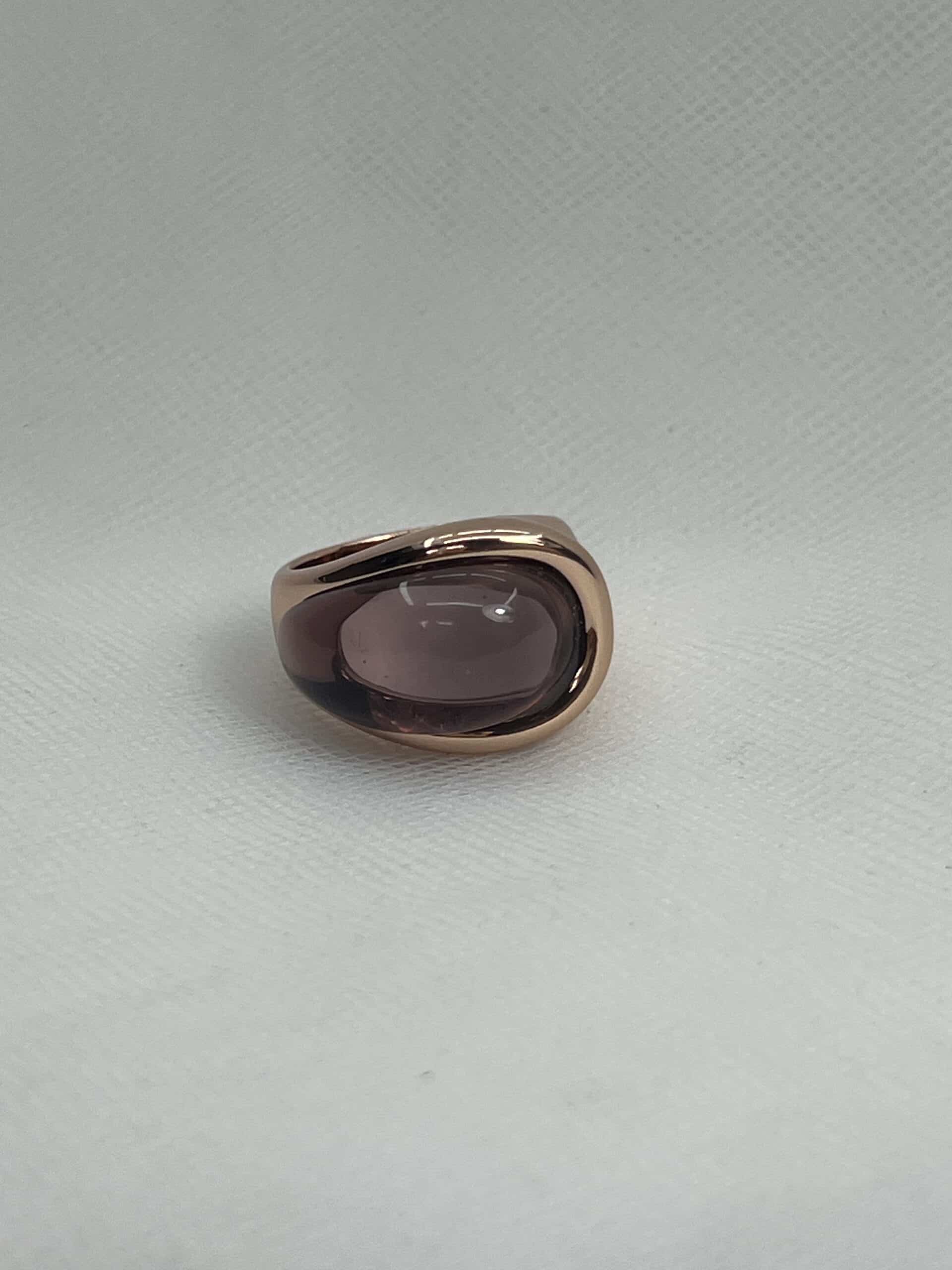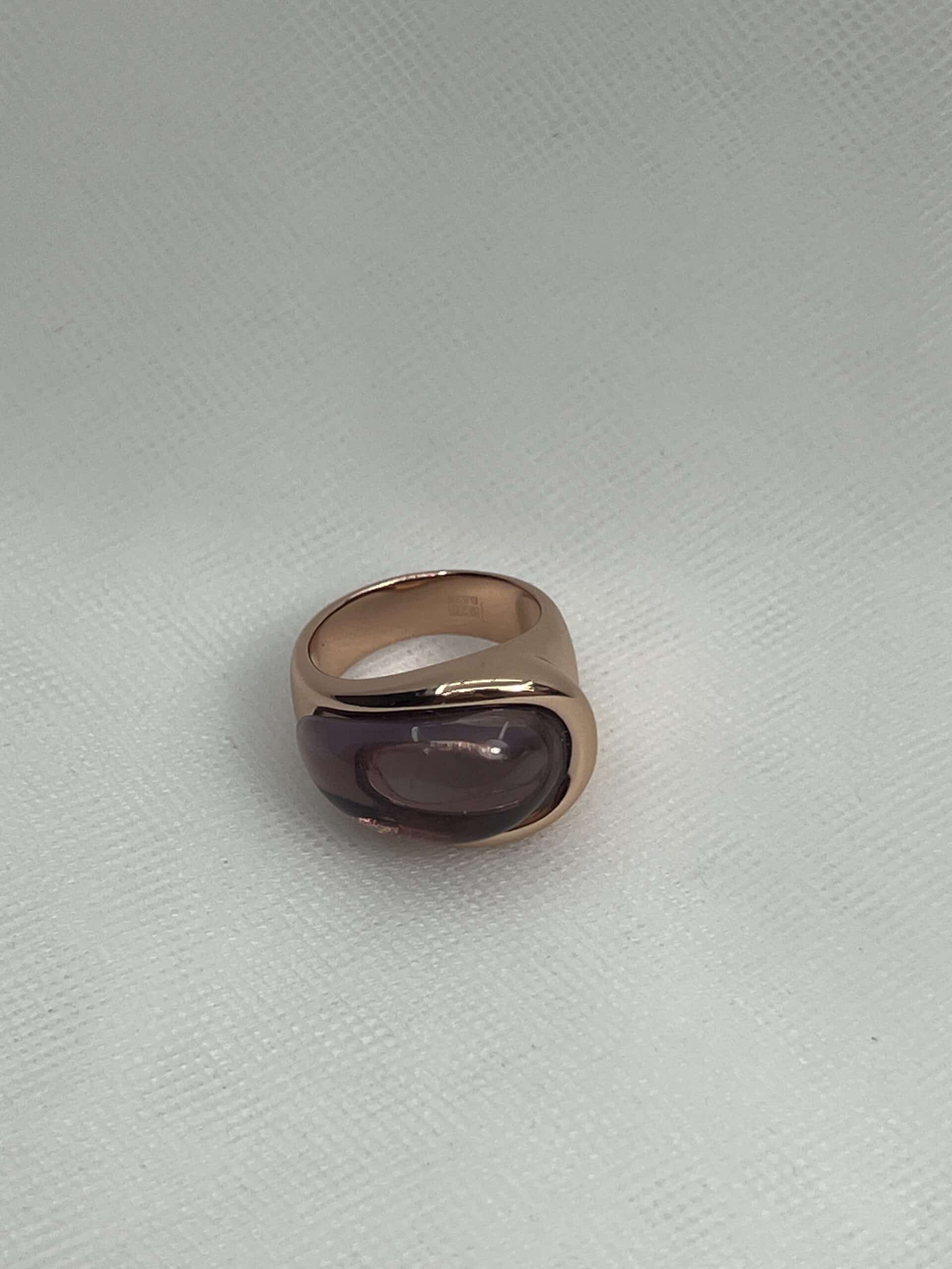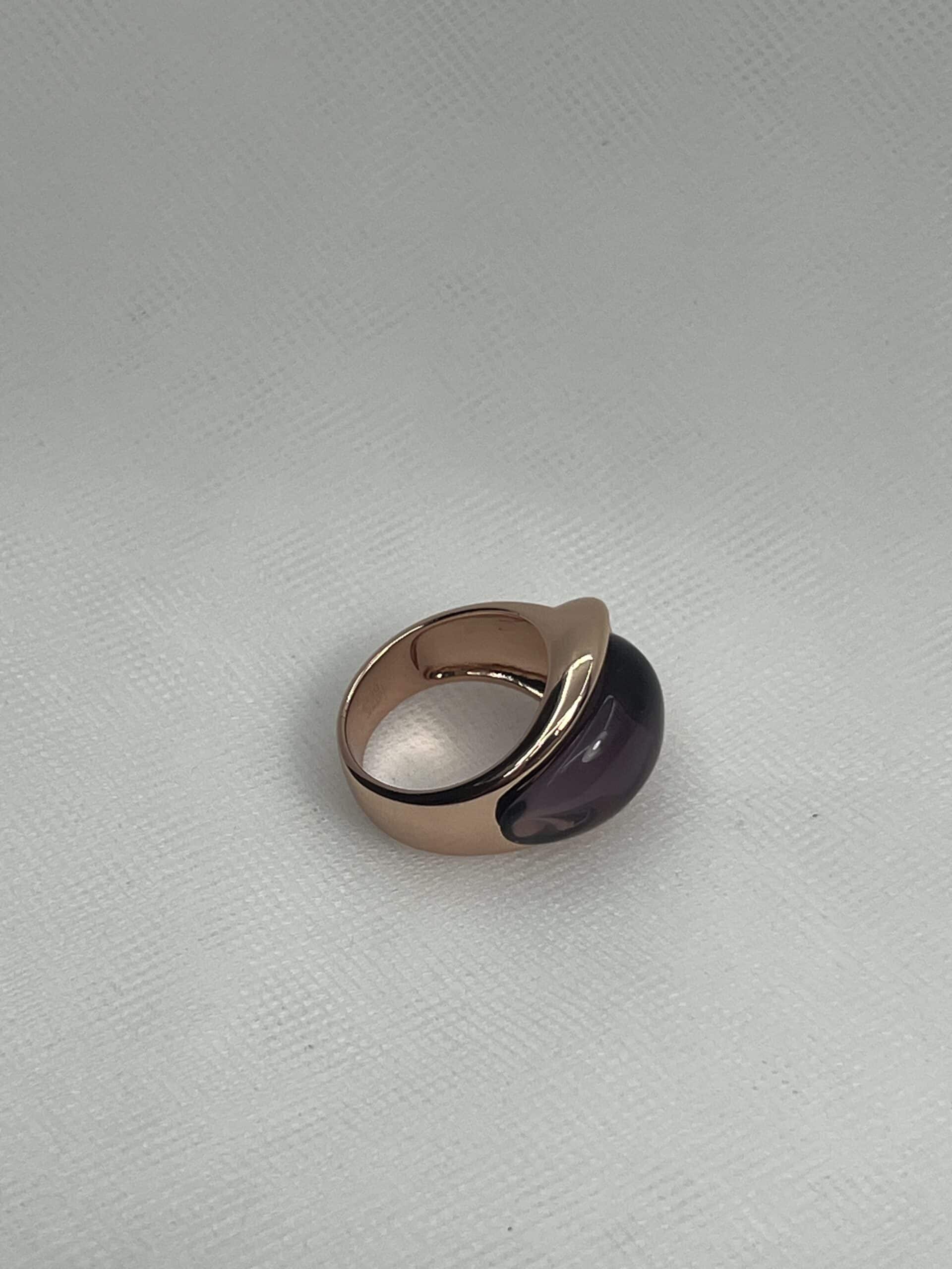 Anillo de plata chapado en oro rosa con piedra ovalada cabujon de color amatista.