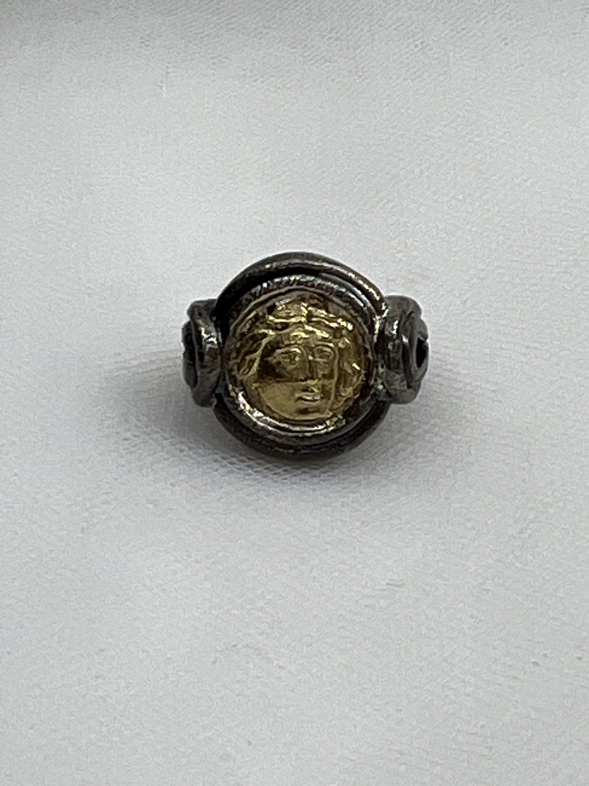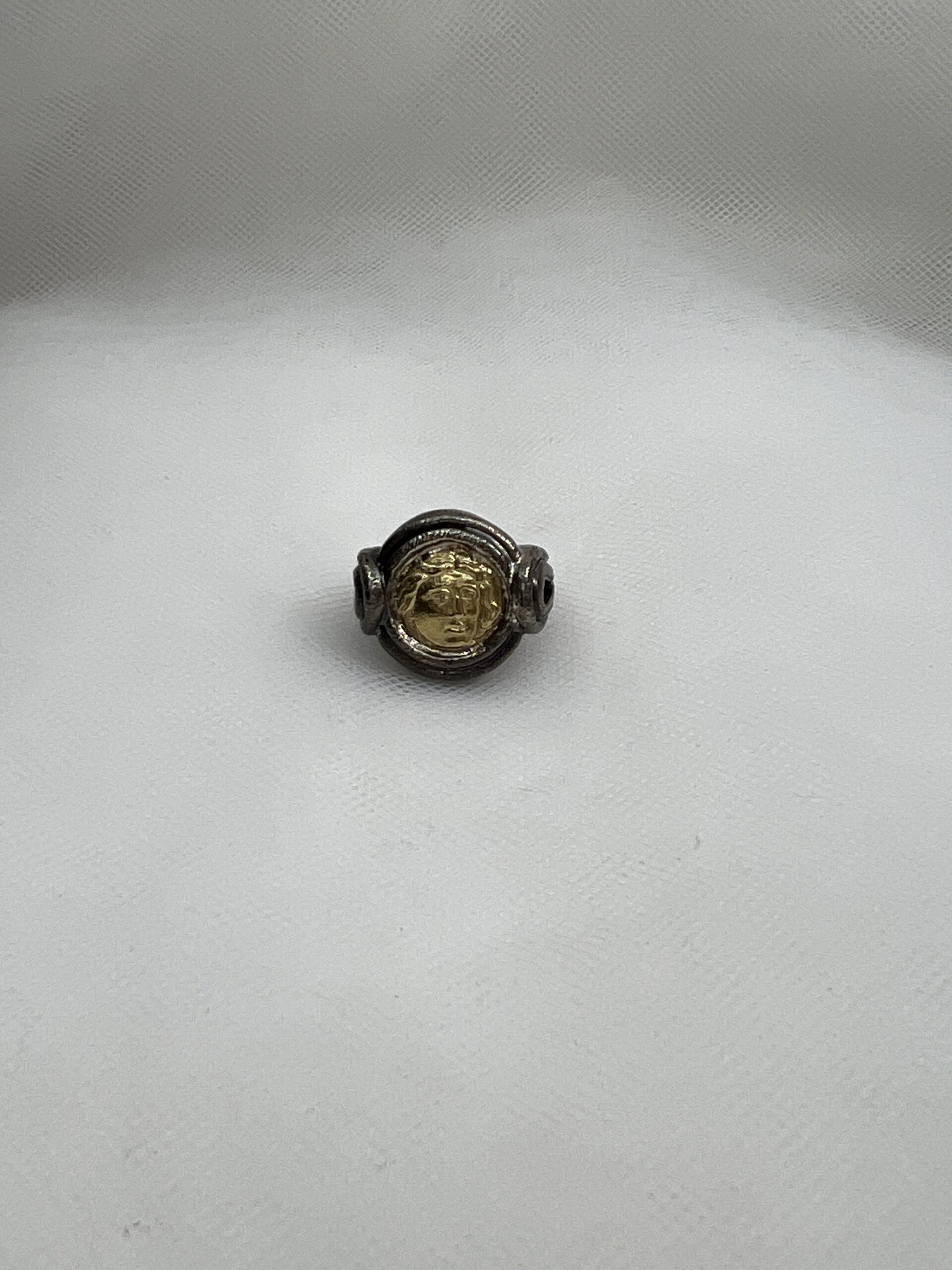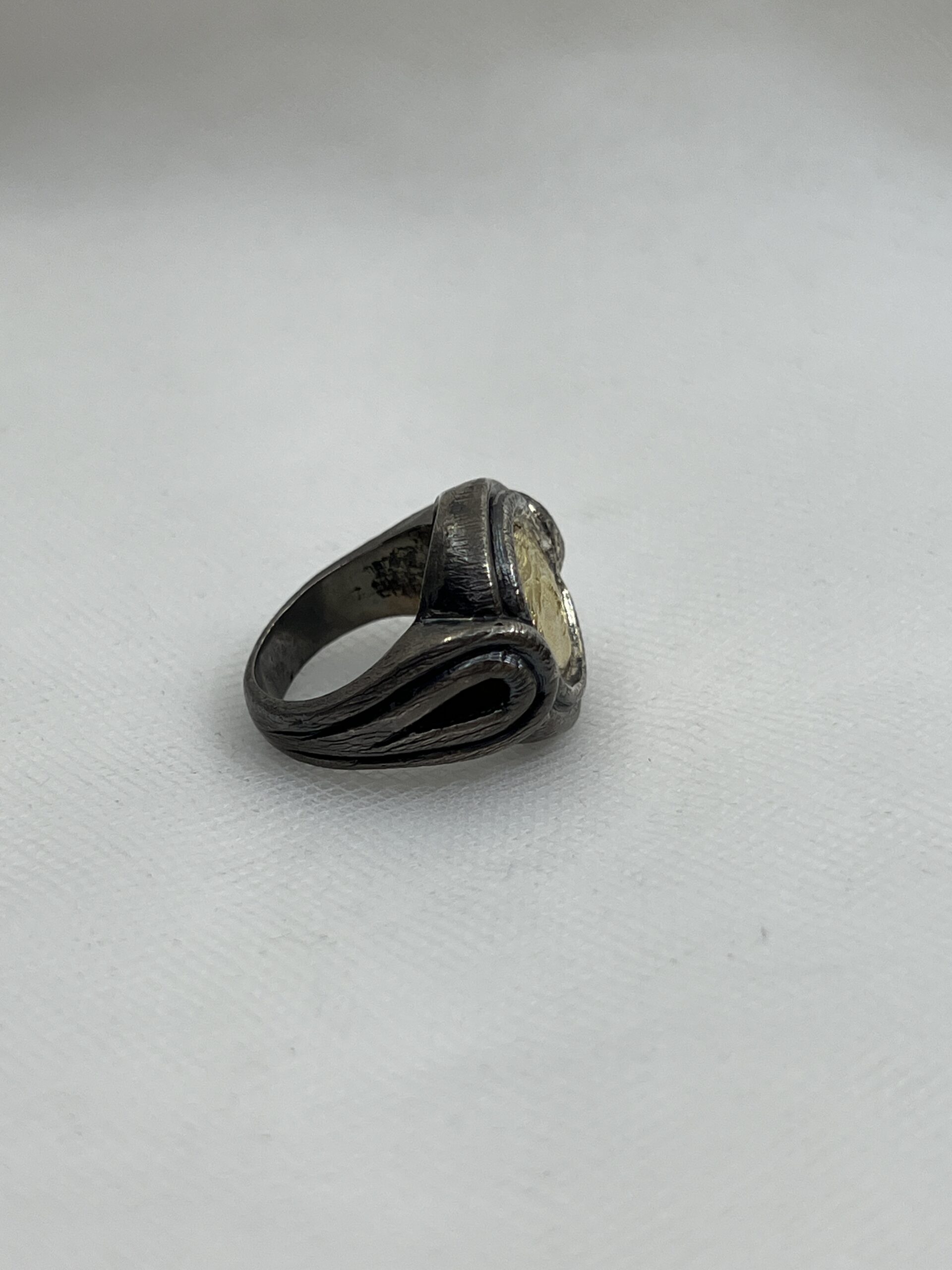 Anillo de plata negra con moneda de oro.
