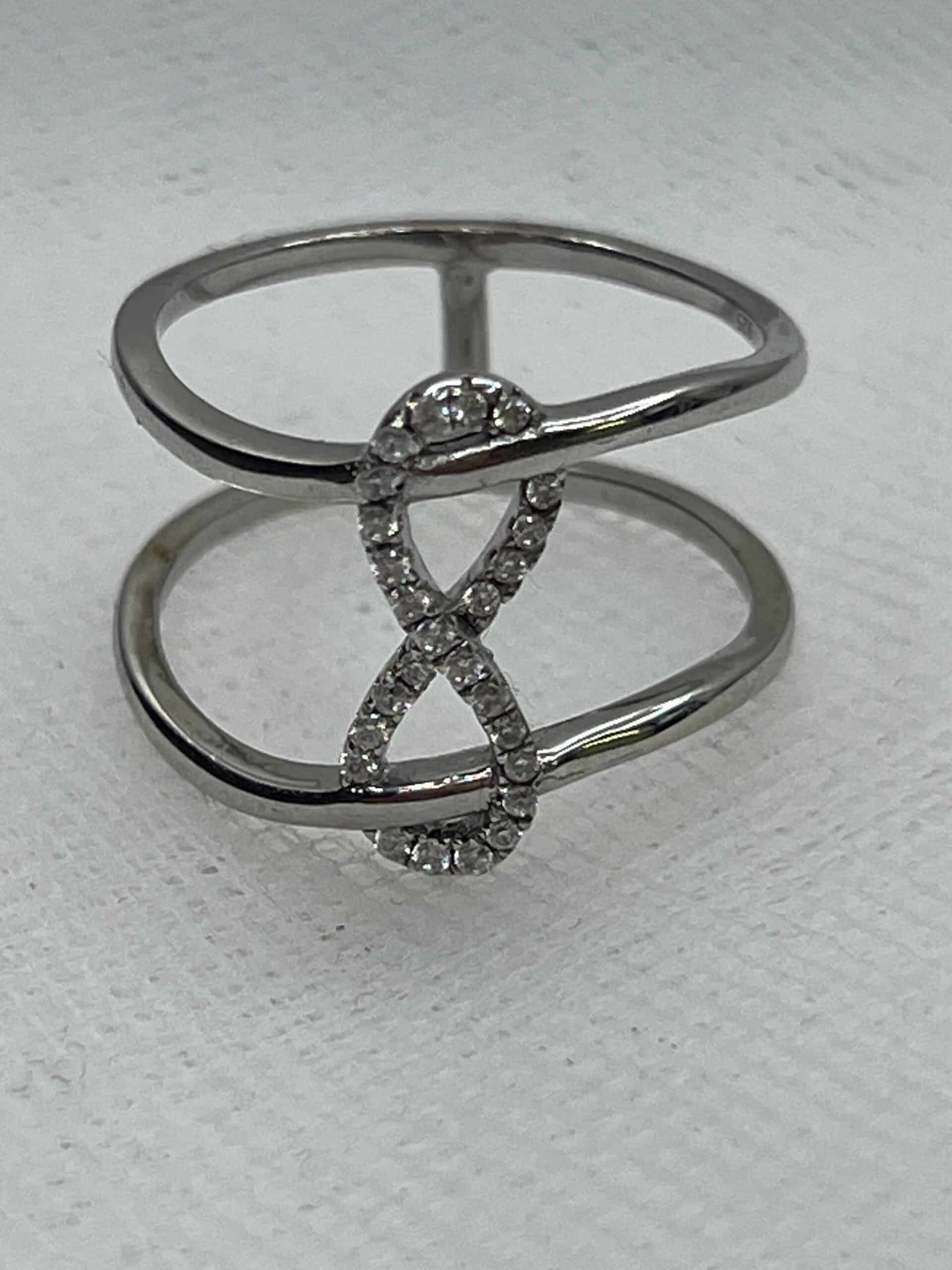 Anillo de plata rodiado en oro blanco con infinito de circonitas.
