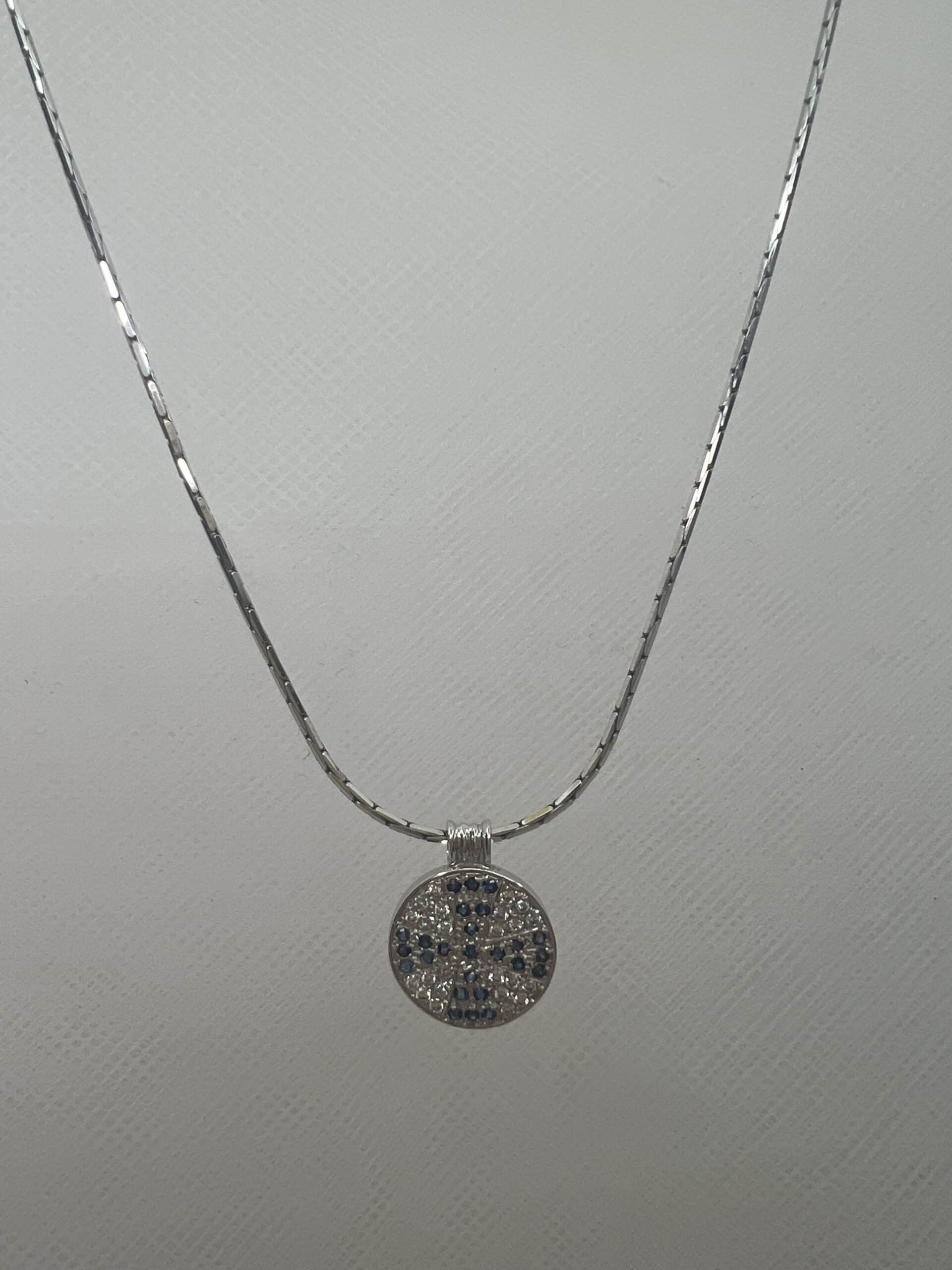 Collar de oro blanco con colgante de brillantes y zafiros.