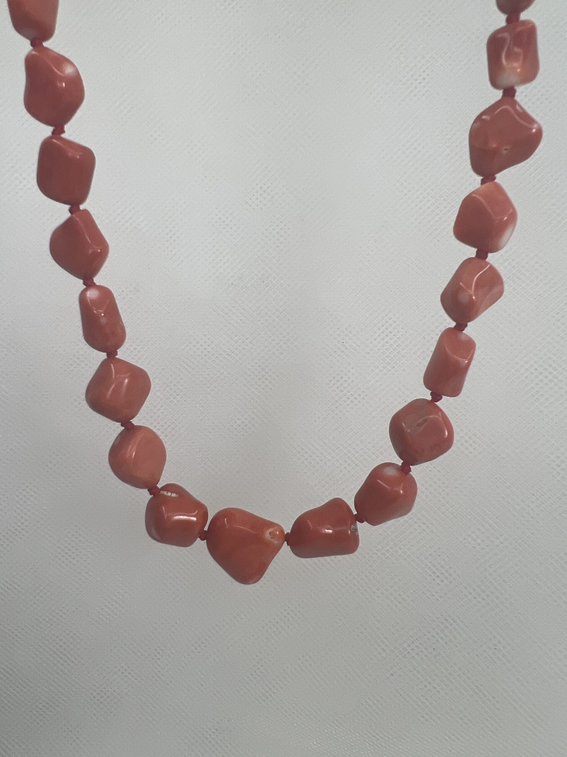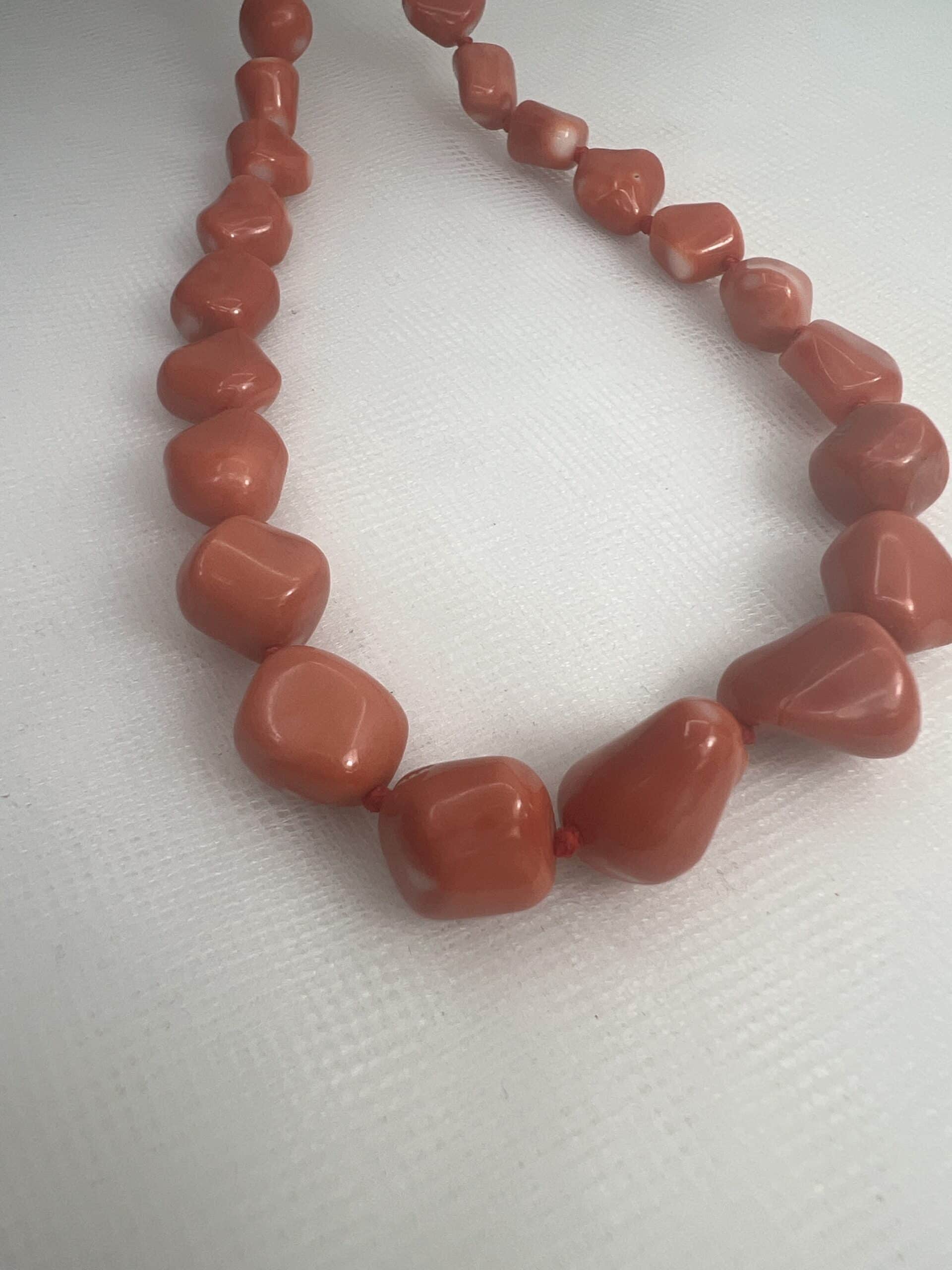 Collar de coral japones con broche de oro. Medida 46 cm.