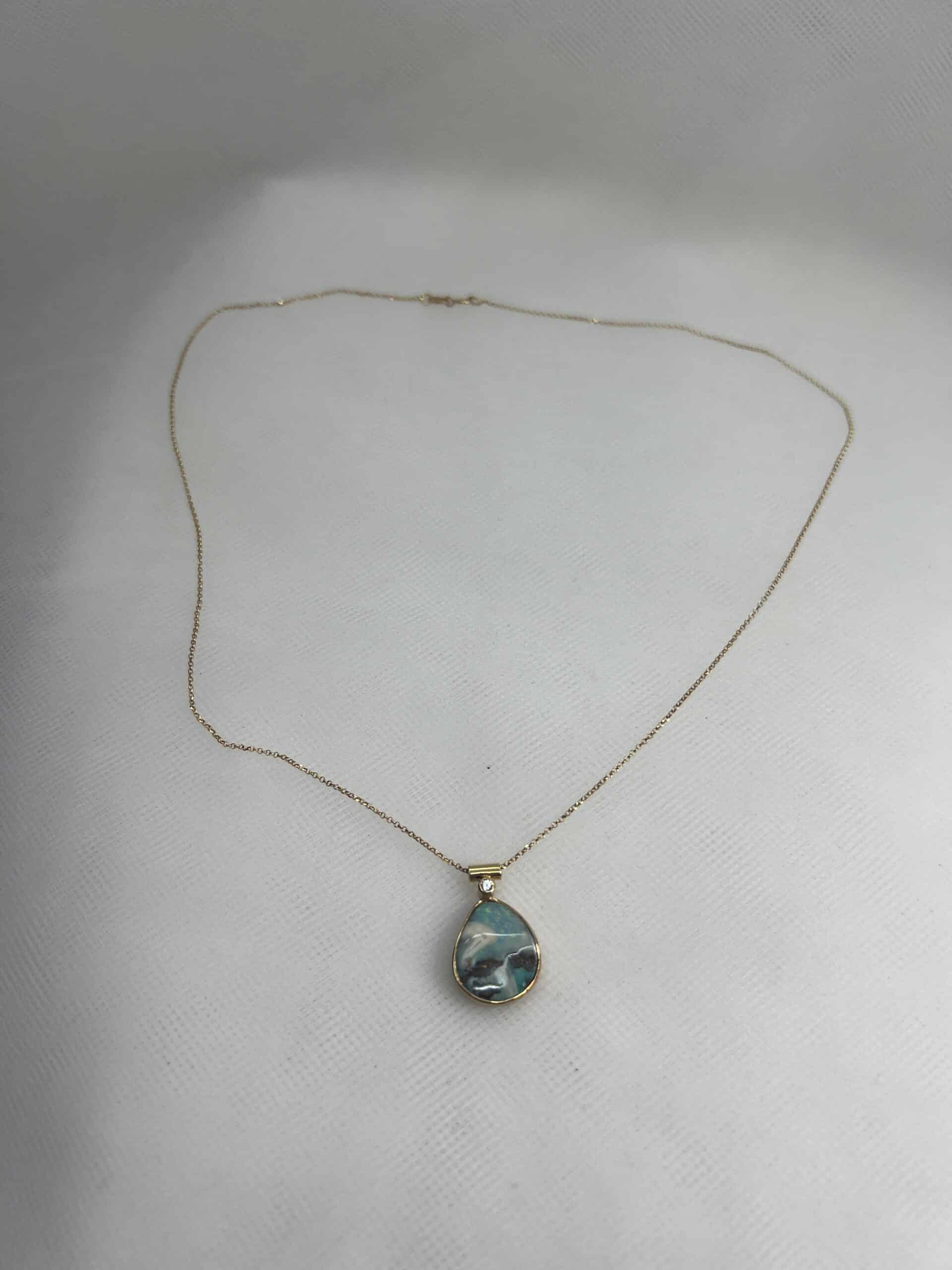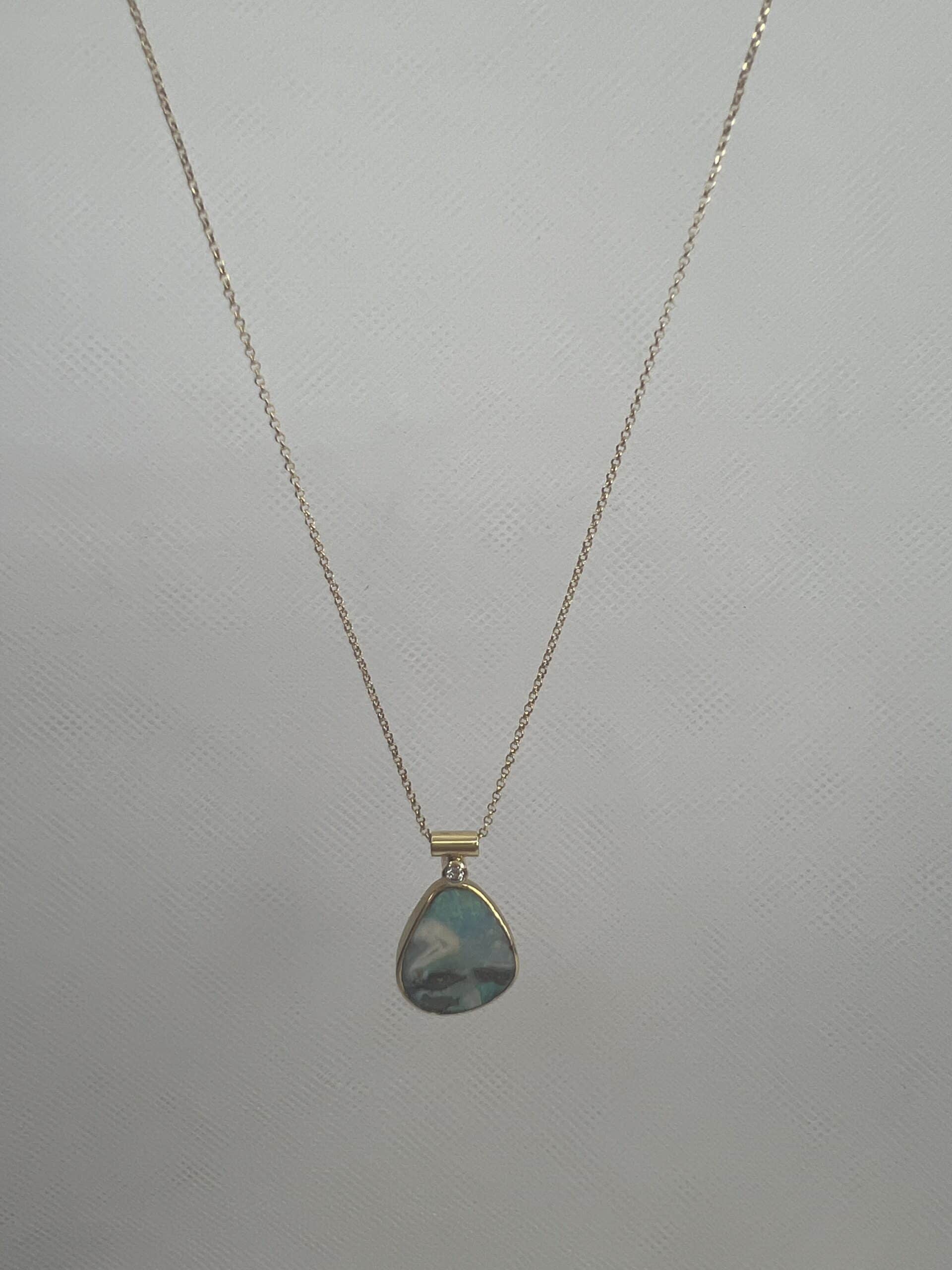 Cadena de oro con colgante de opalo australiano 5.51 K y brillante 0.035 K.
