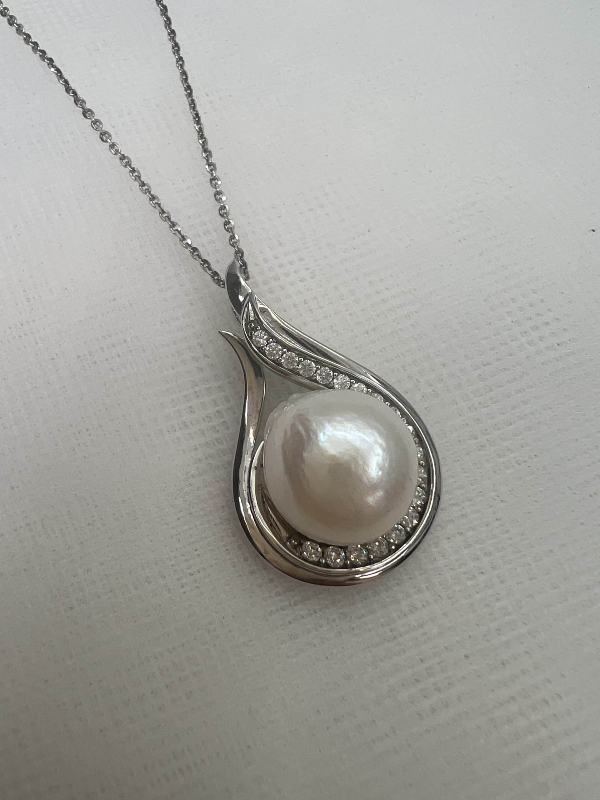 Collar de plata con colgante de perla natural, Medida 45 cm