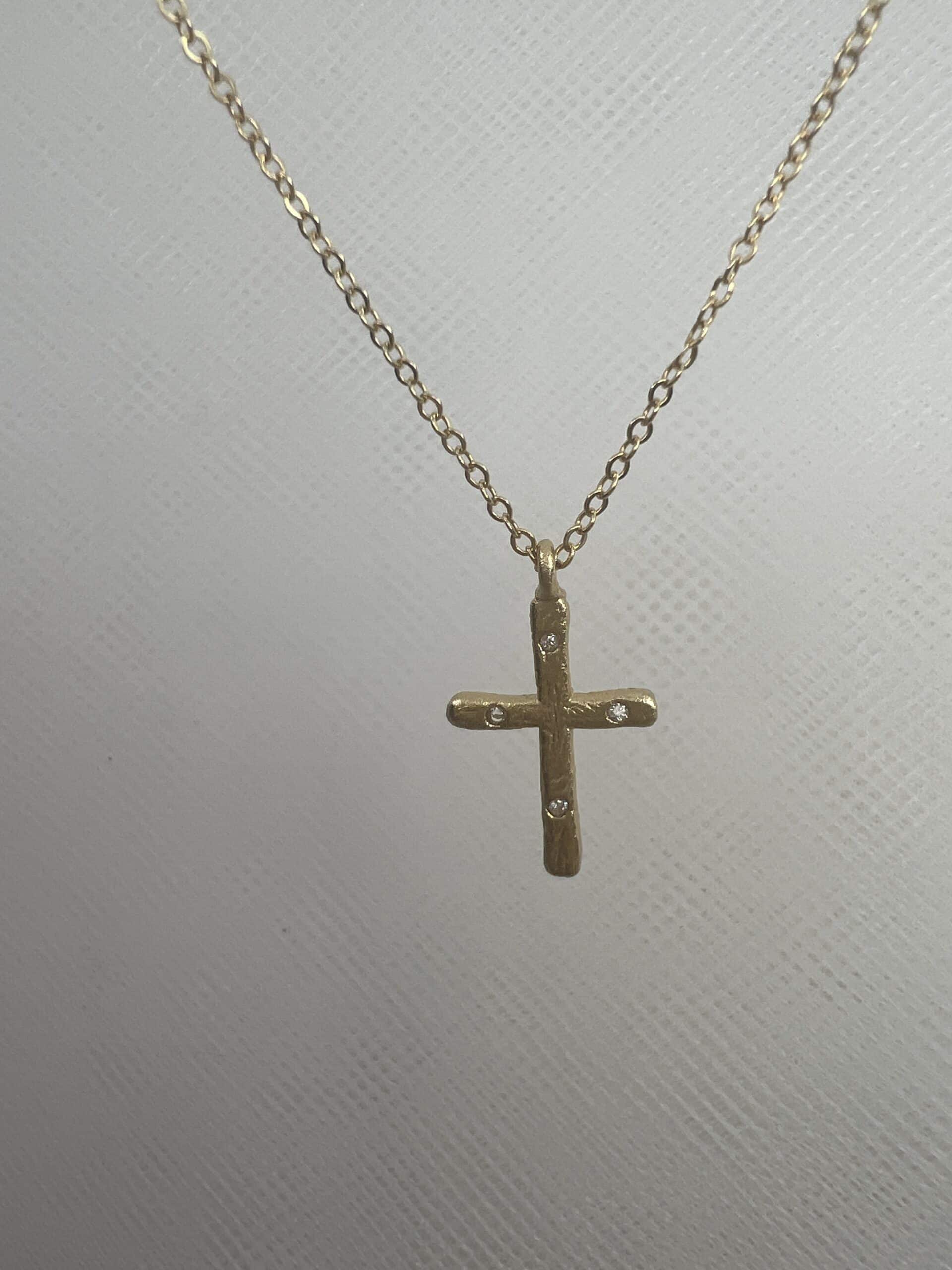 Cadena y cruz de plata chapada en oro .