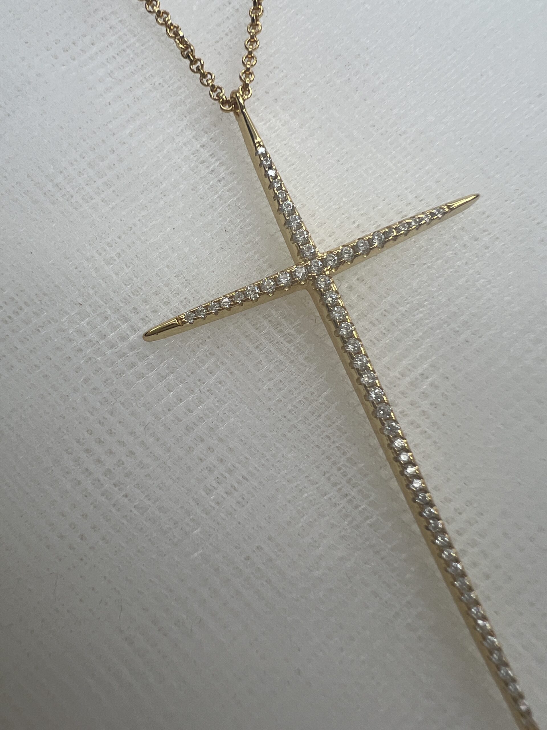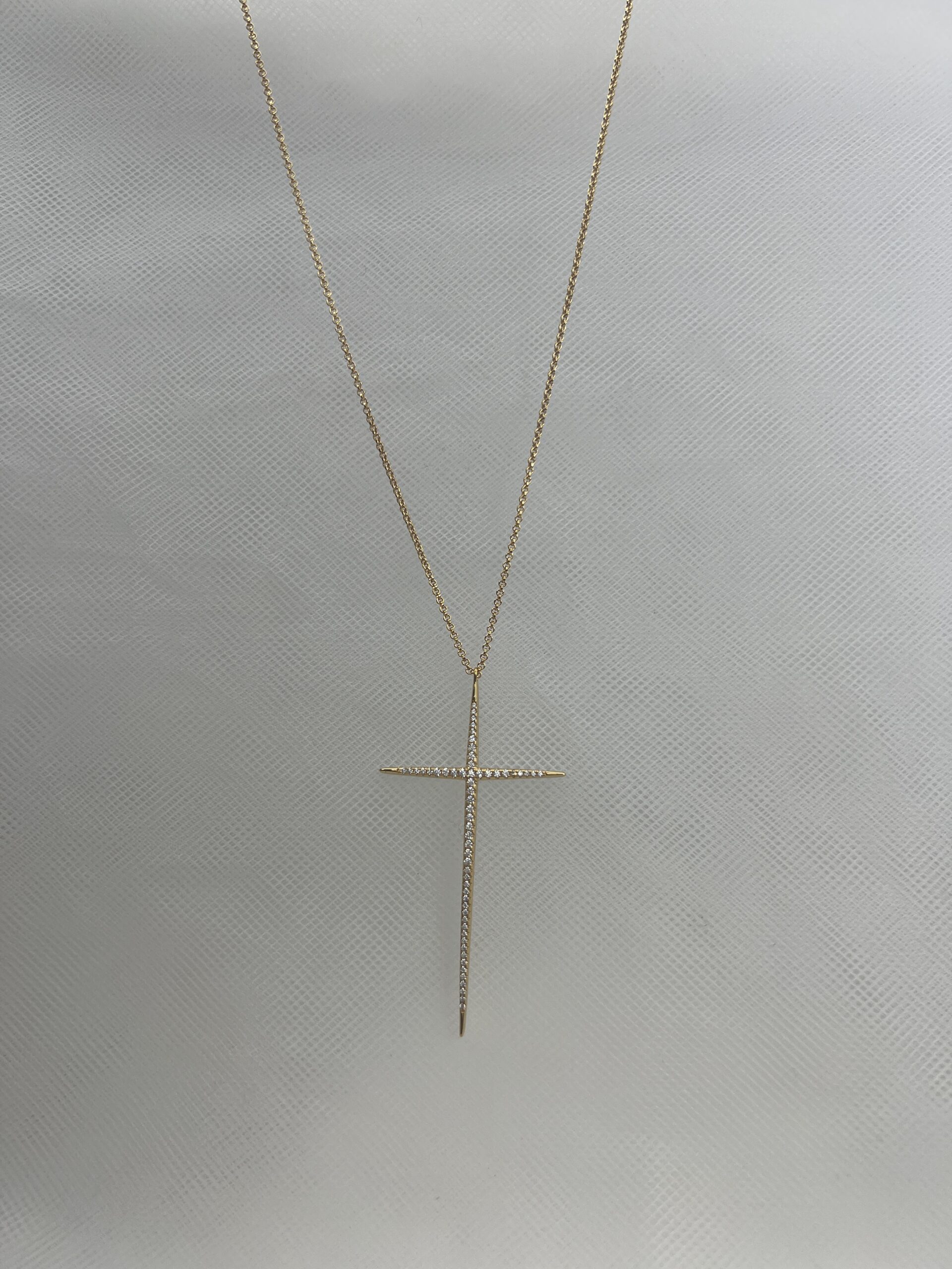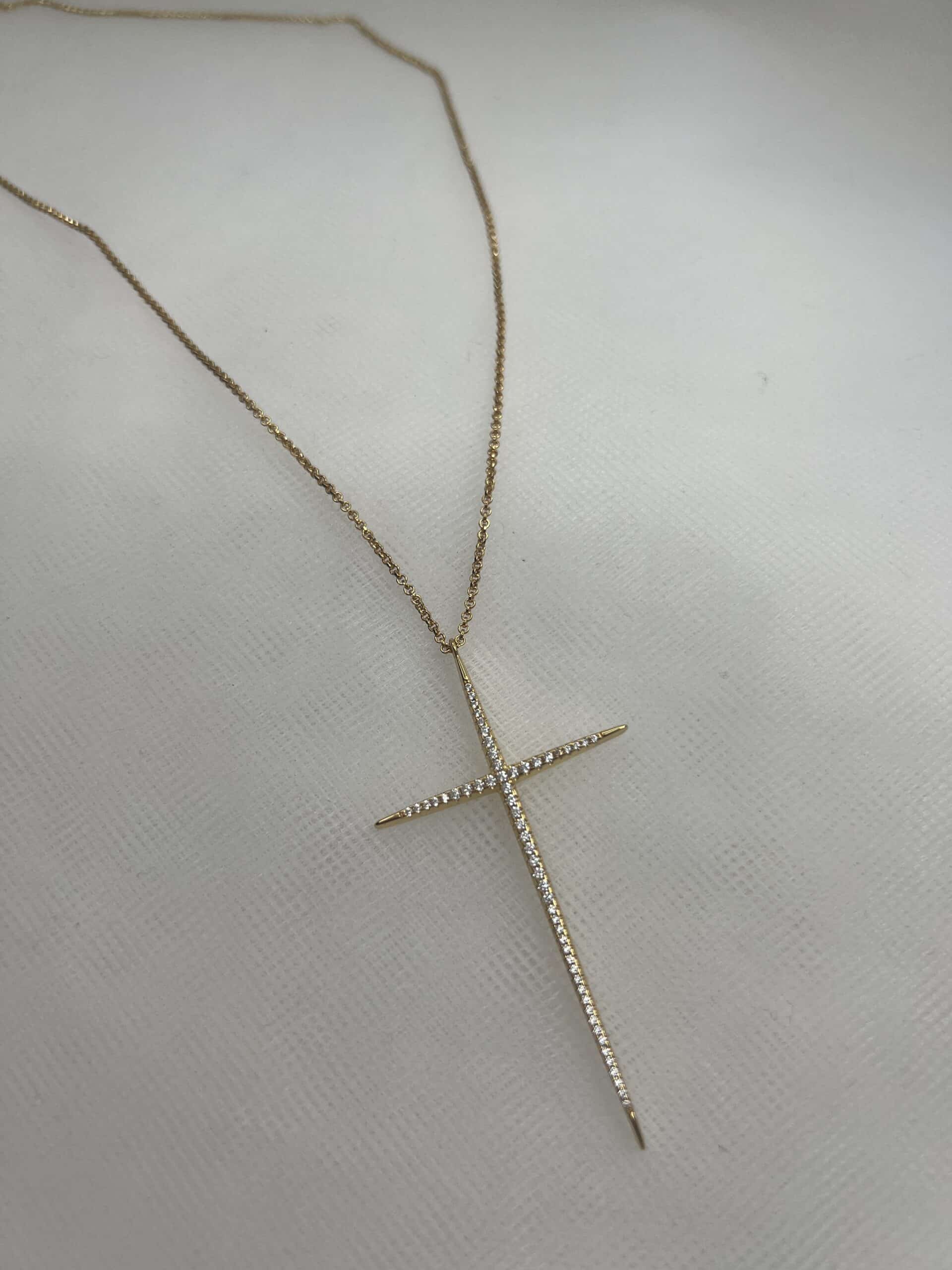Collar de plata chapado en oro amarillo cadena con colgante de cruz y circonitas engastadas.