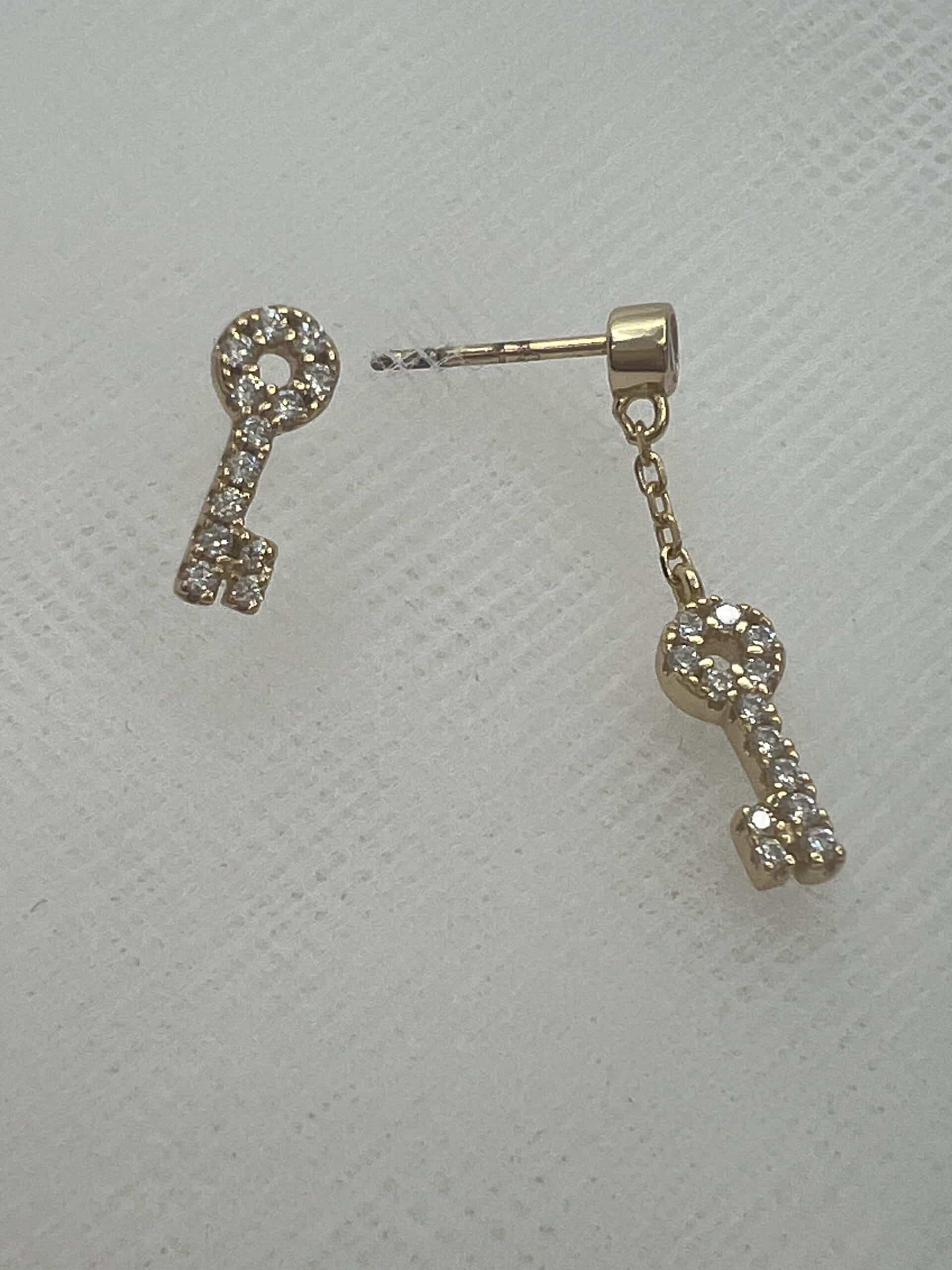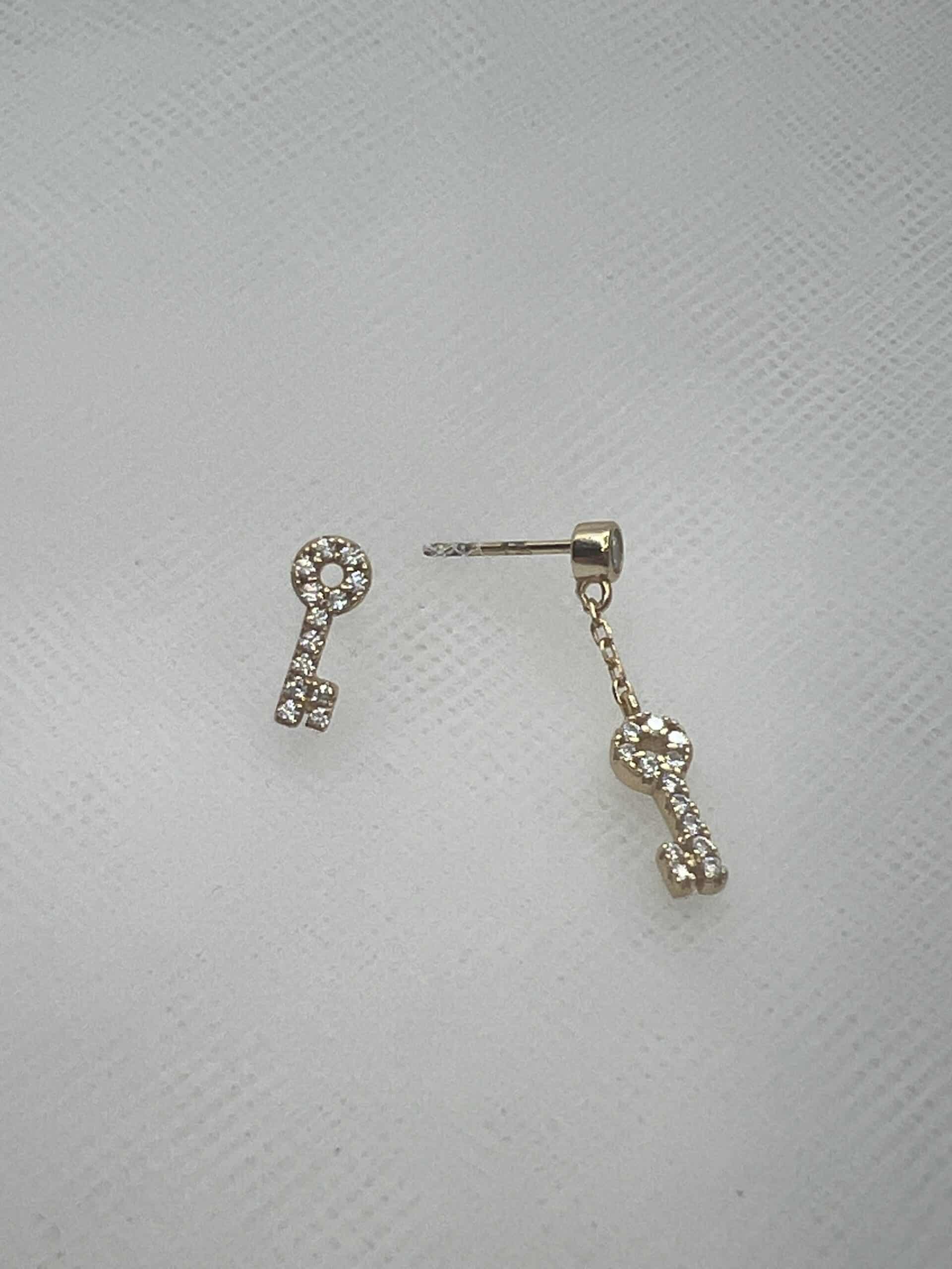 Pendientes de plata chapada en oro asimetricos , con circonitas.