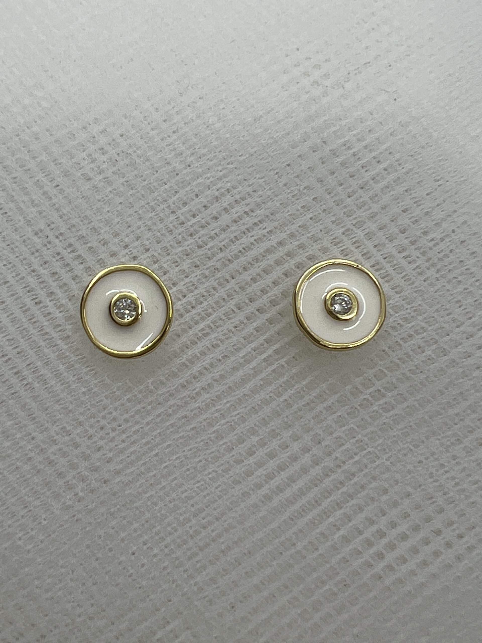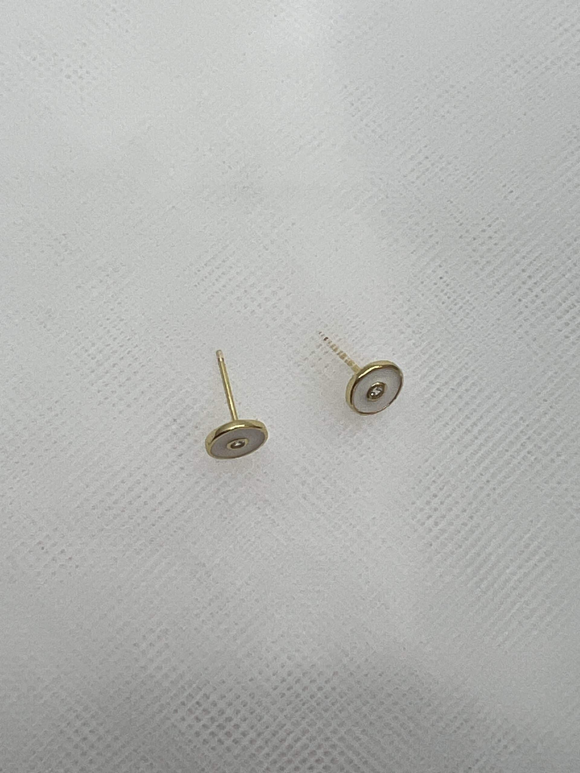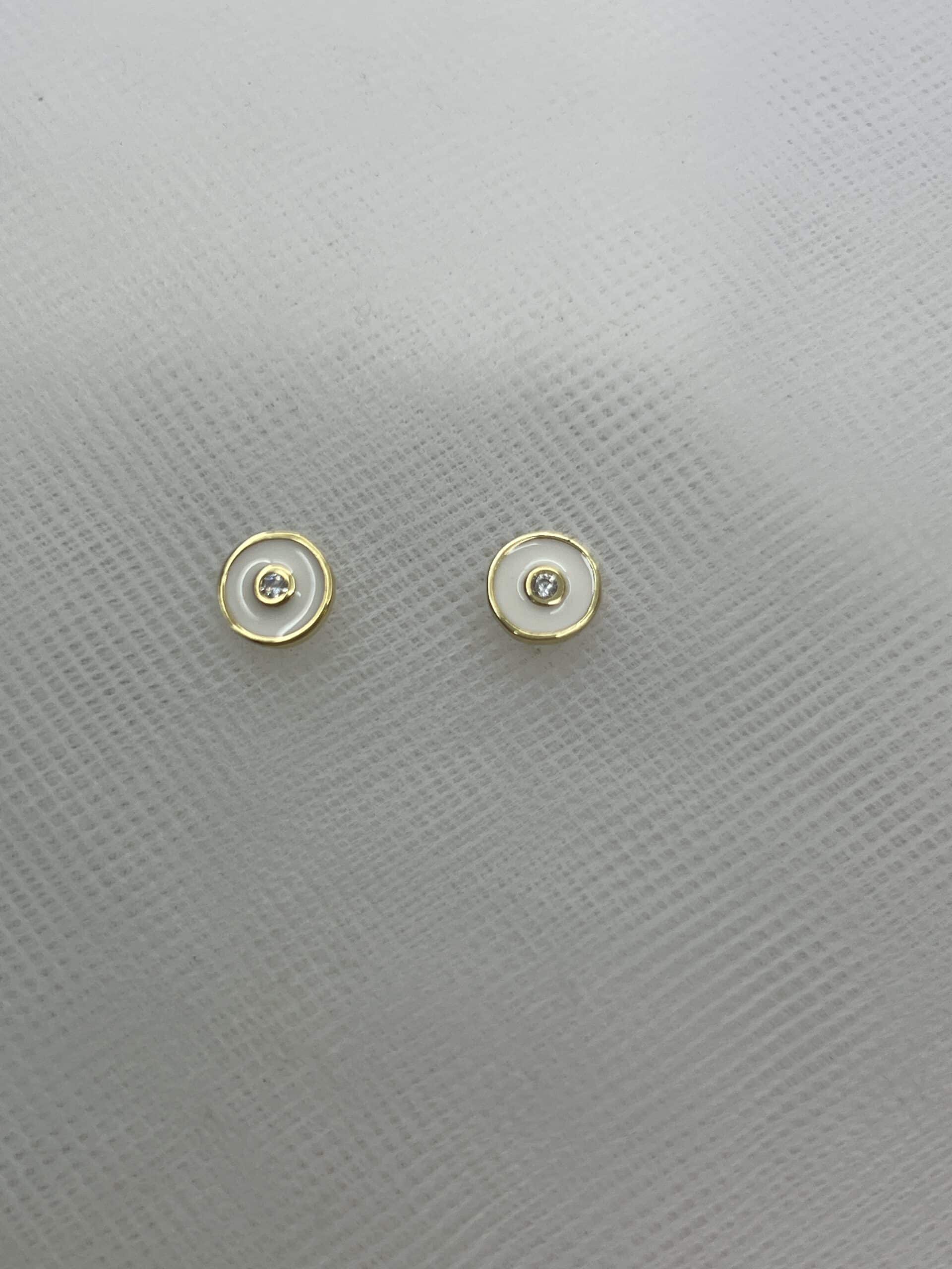 Pendientes chapados con esmalte blanco.