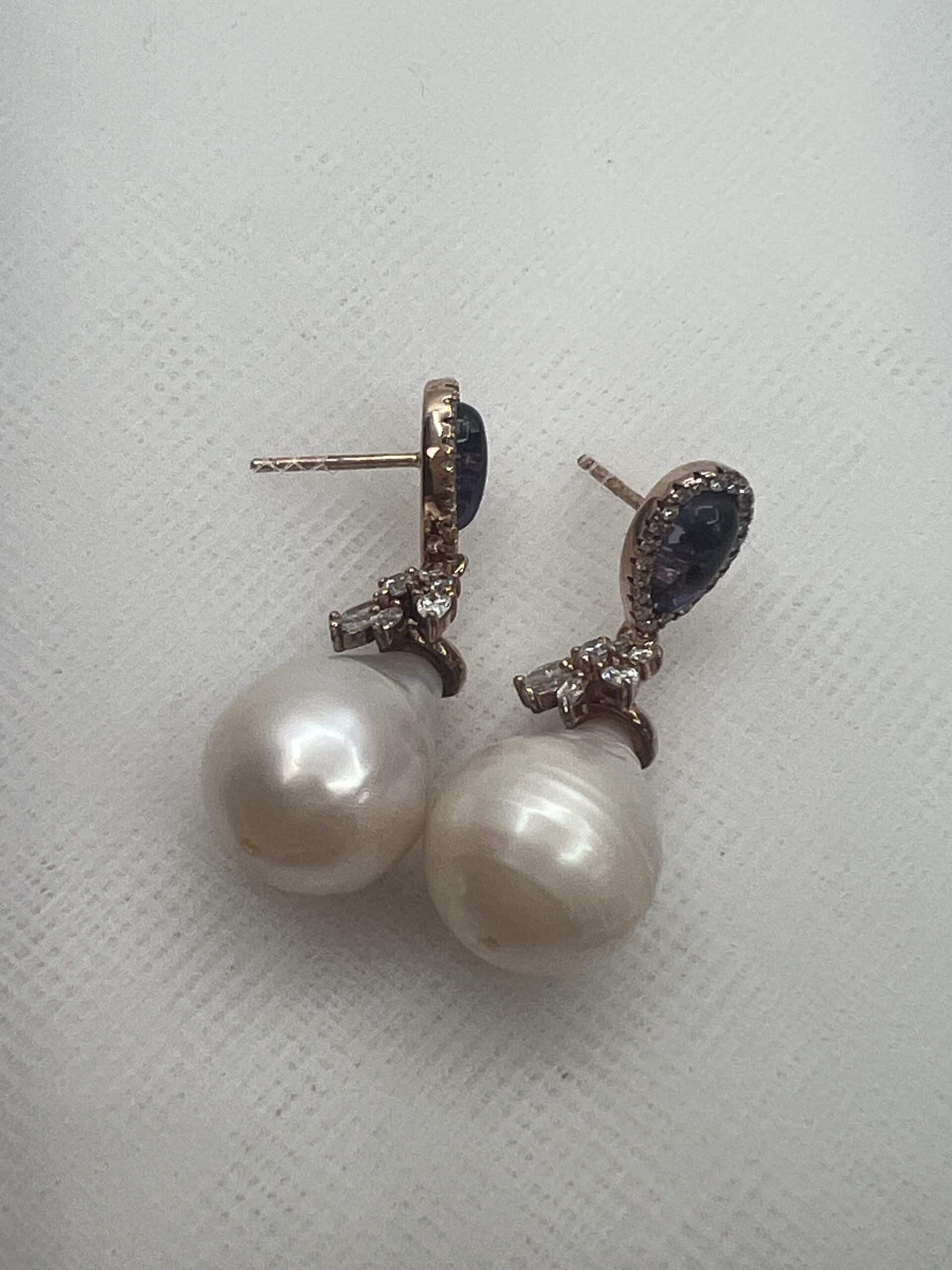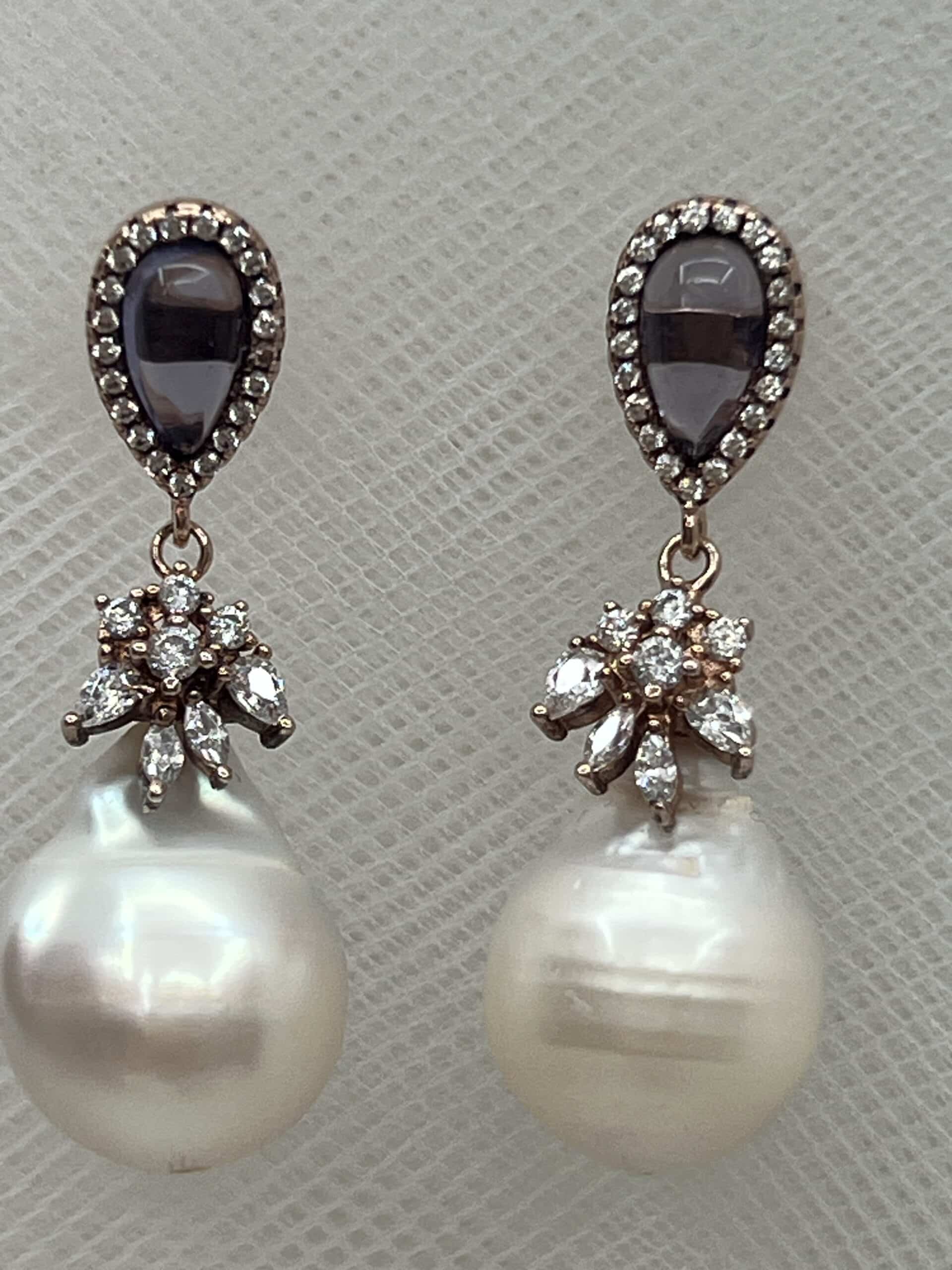 Pendientes de plata chapada en oro rosa con circonitas y perlas.
