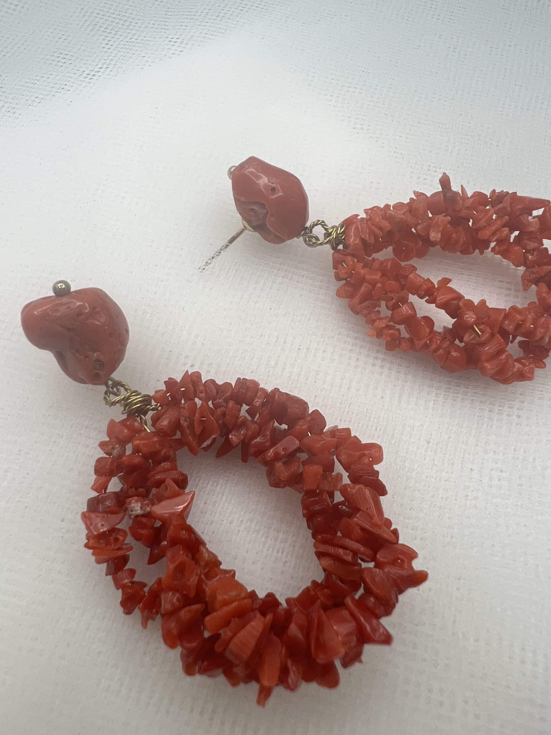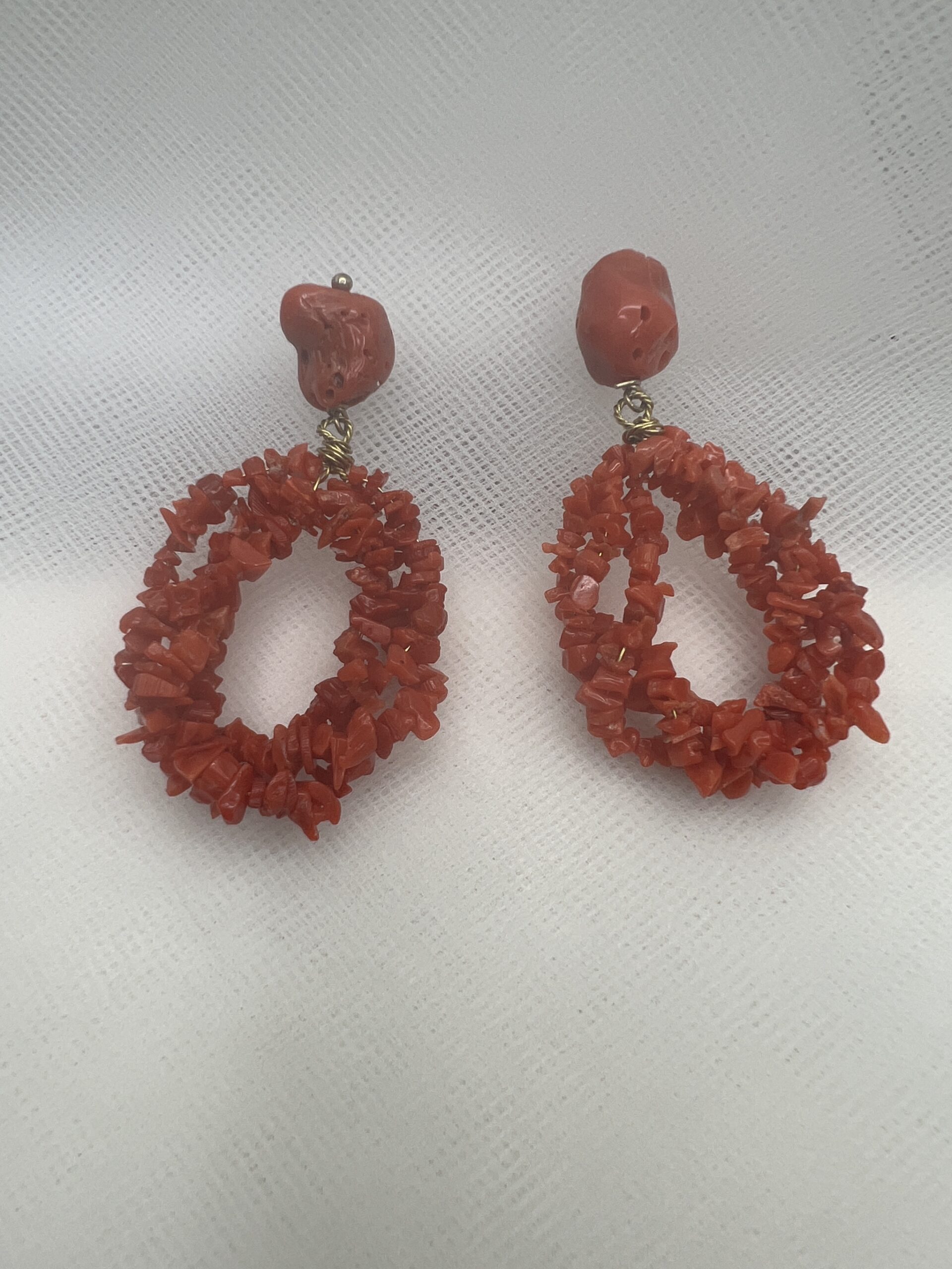 Pendientes de plata chapada en oro amarillo con coral natural.