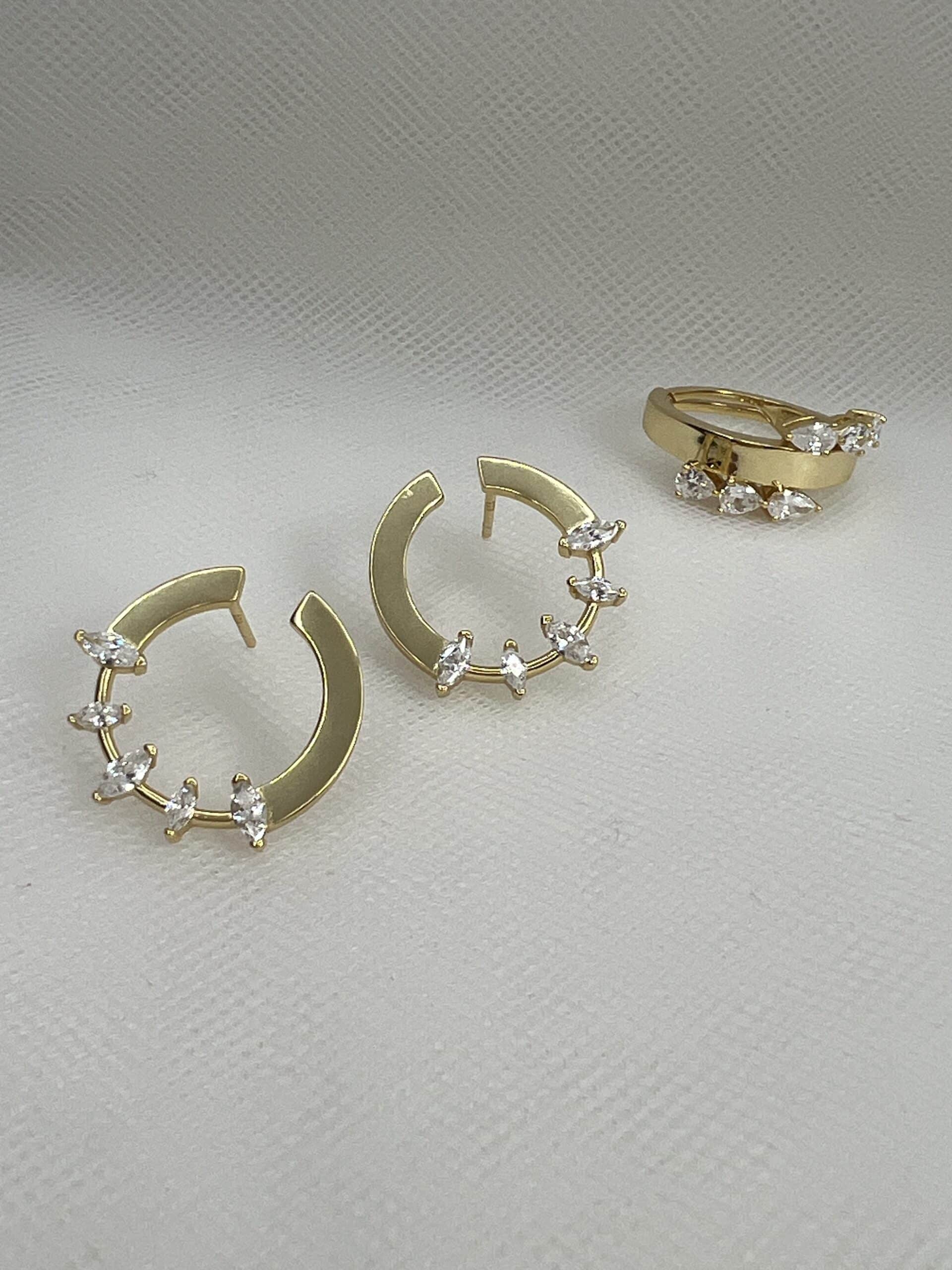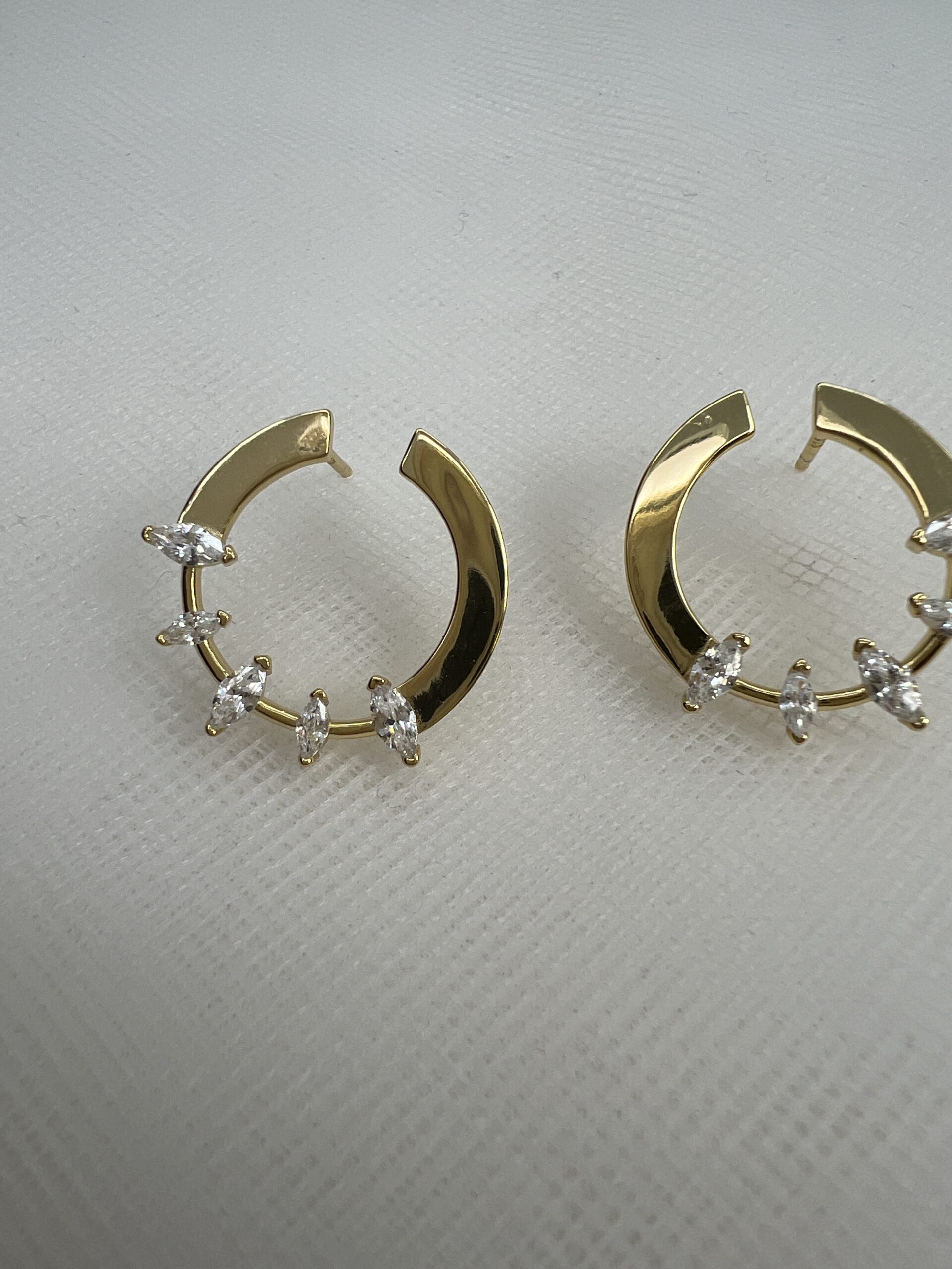 Pendientes de plata chapados en oro amarillo circulos abiertos con circonitas blancas.