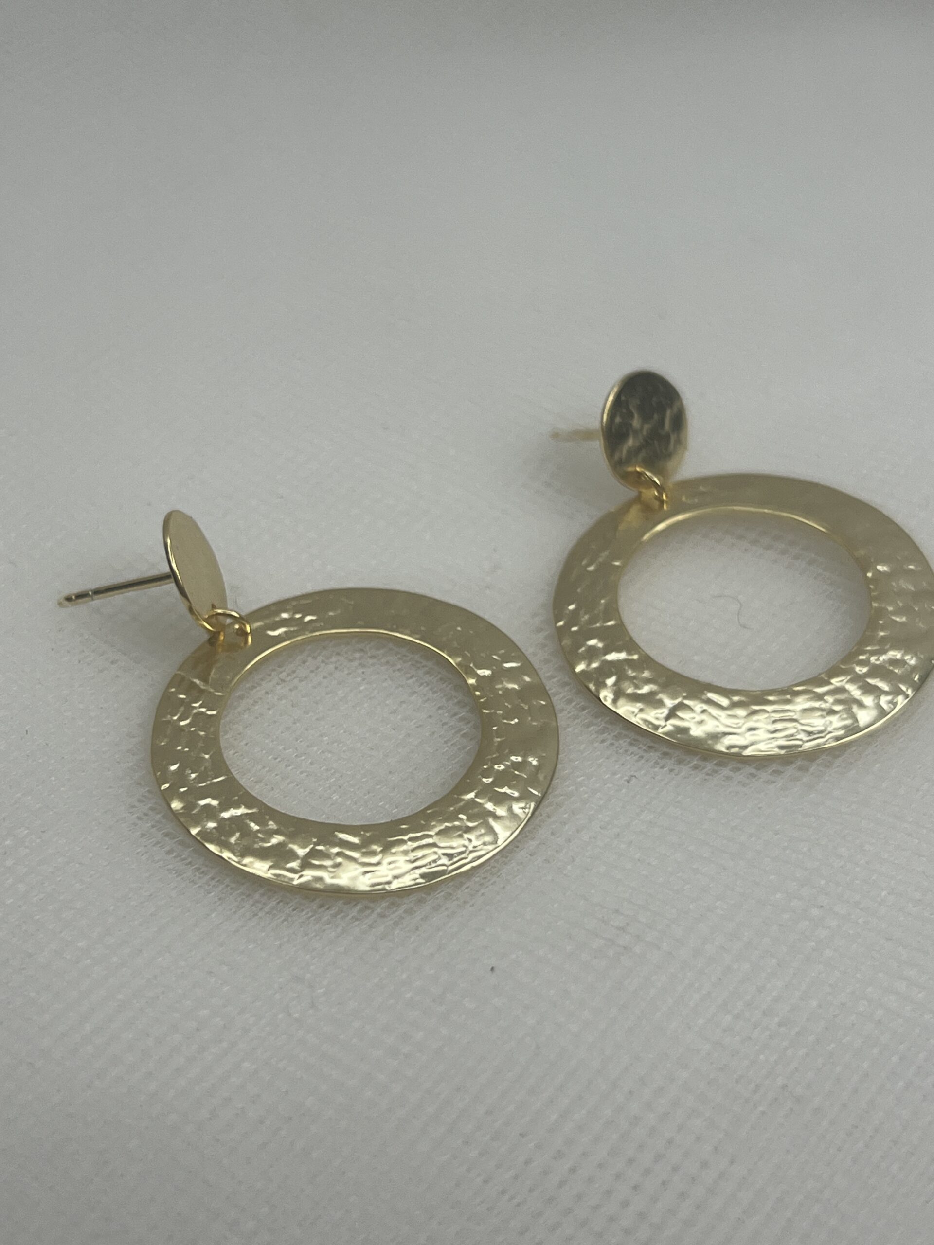 Pendientes chapados en oro amarillo pequeños circulos con aros martelados.