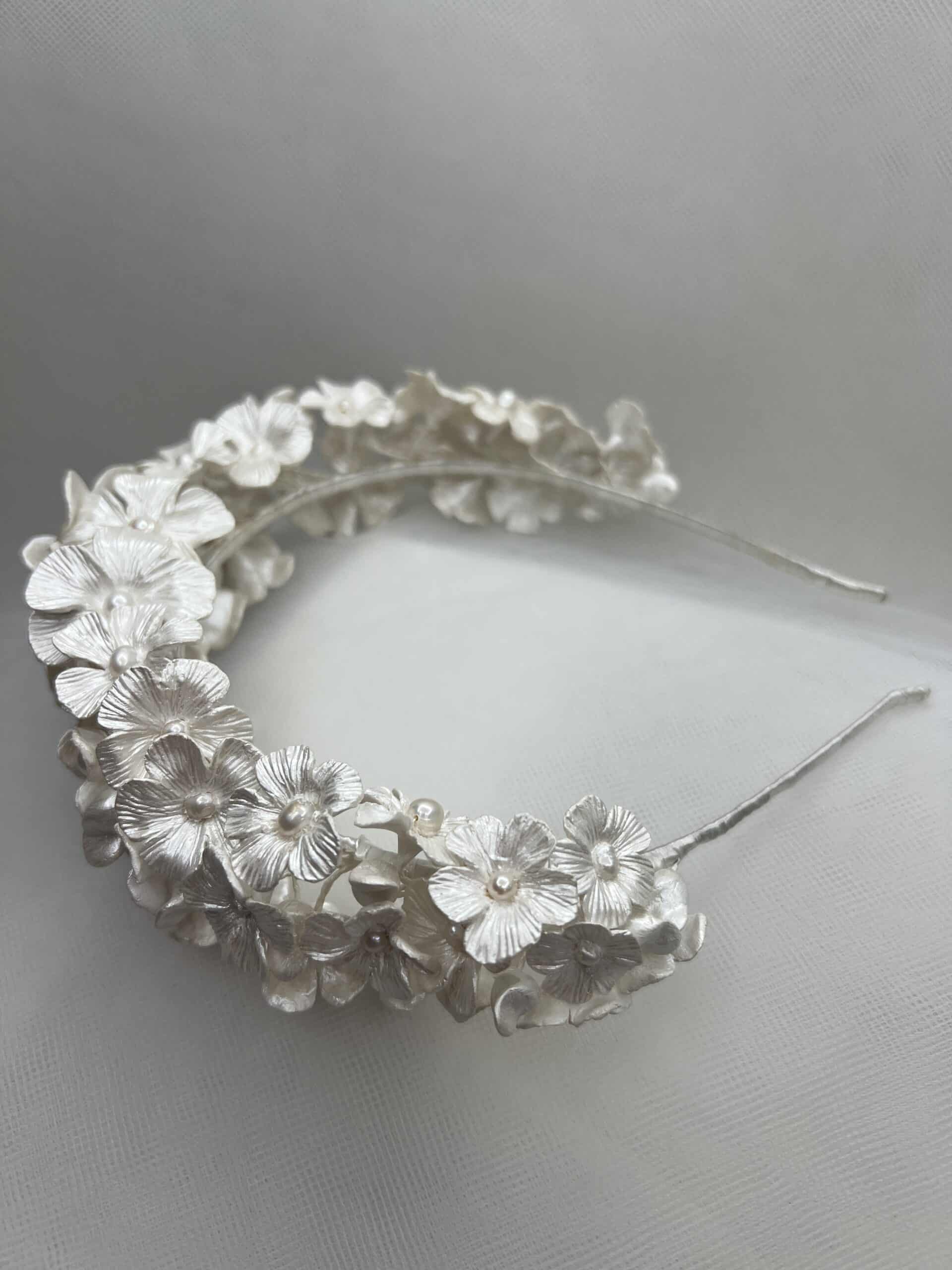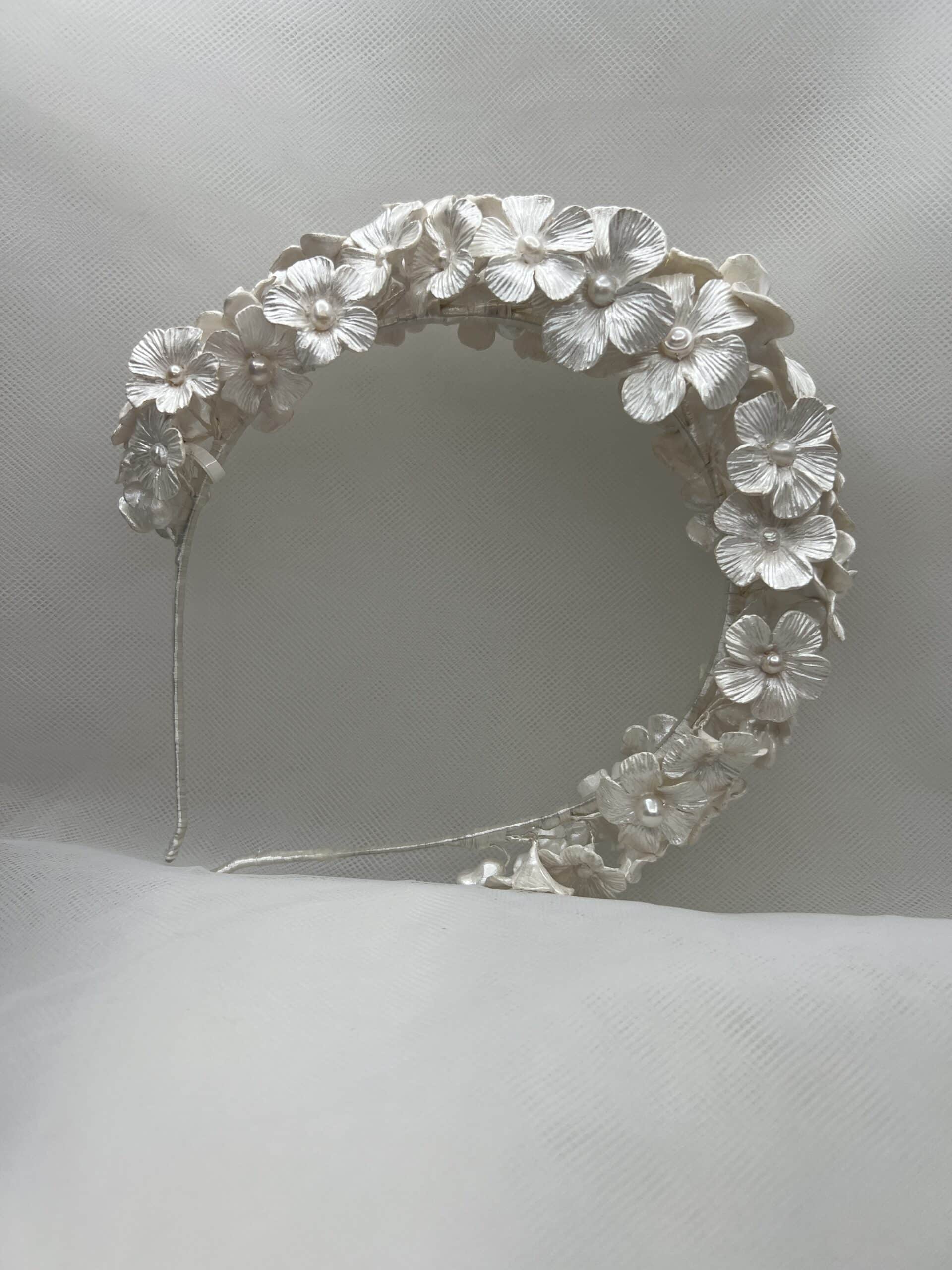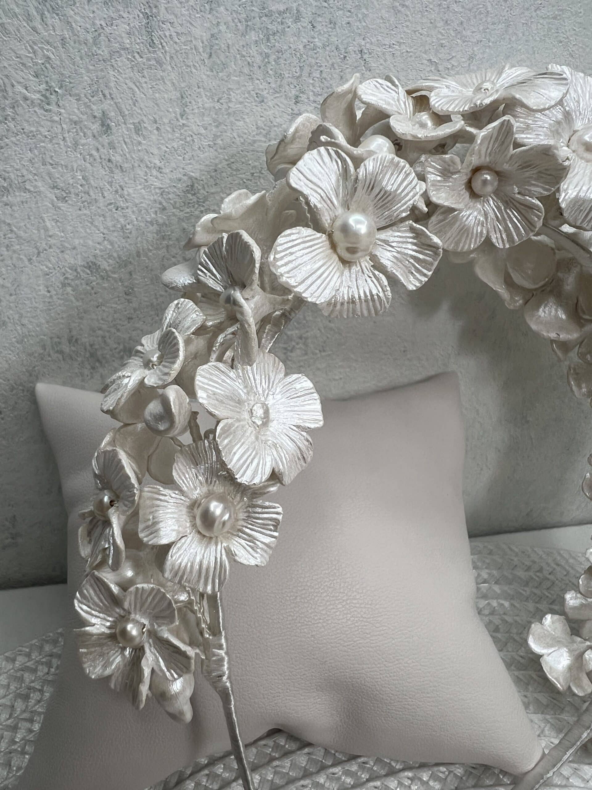 Una diadema con flores de porcelana que a su vez cada una de ellas lleva una perla natural . Todas las flores son moldeadas a mano lo que hace que sea una diadema muy especial que perdurara en el tiempo siendo siempre bonita . Las novias romanticas estaran encantadas con esta diadema .